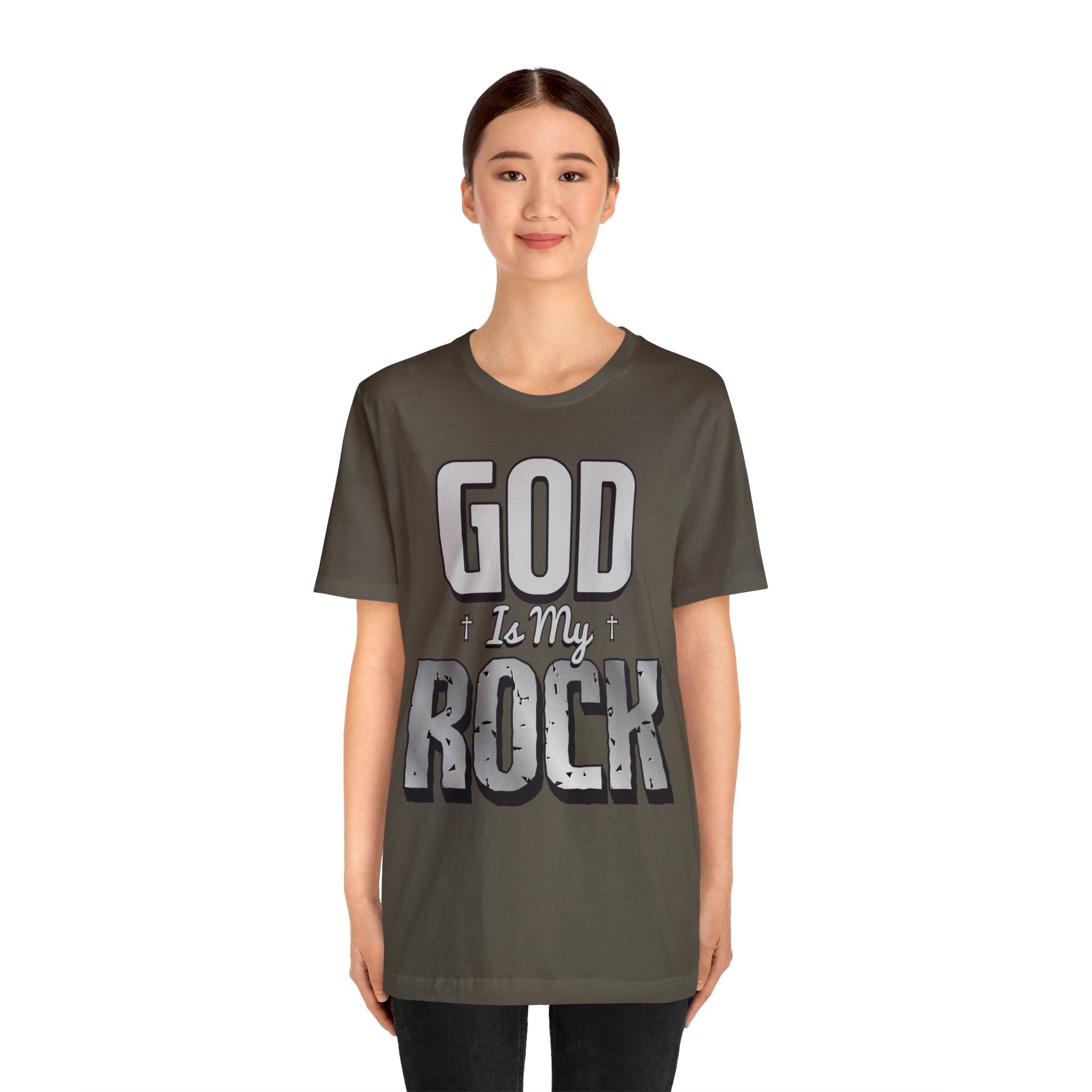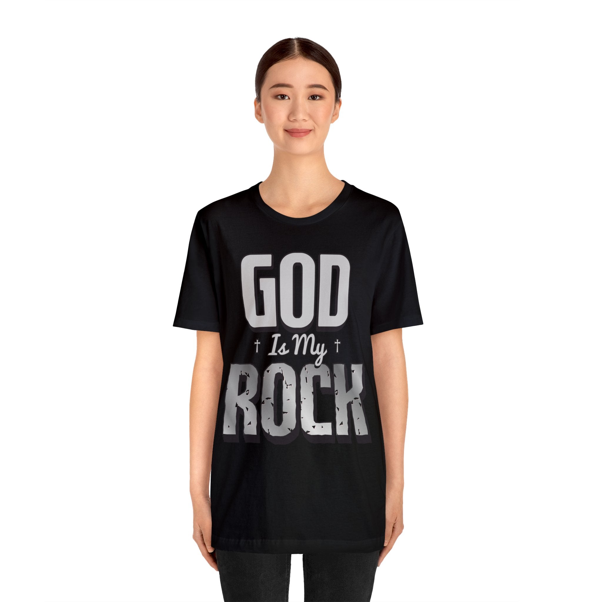 The “God is My Rock” tee features a high-quality print that retains its vibrancy even after countless washes. This ensures your message of faith remains clear and impactful, allowing you to share your values with the world.